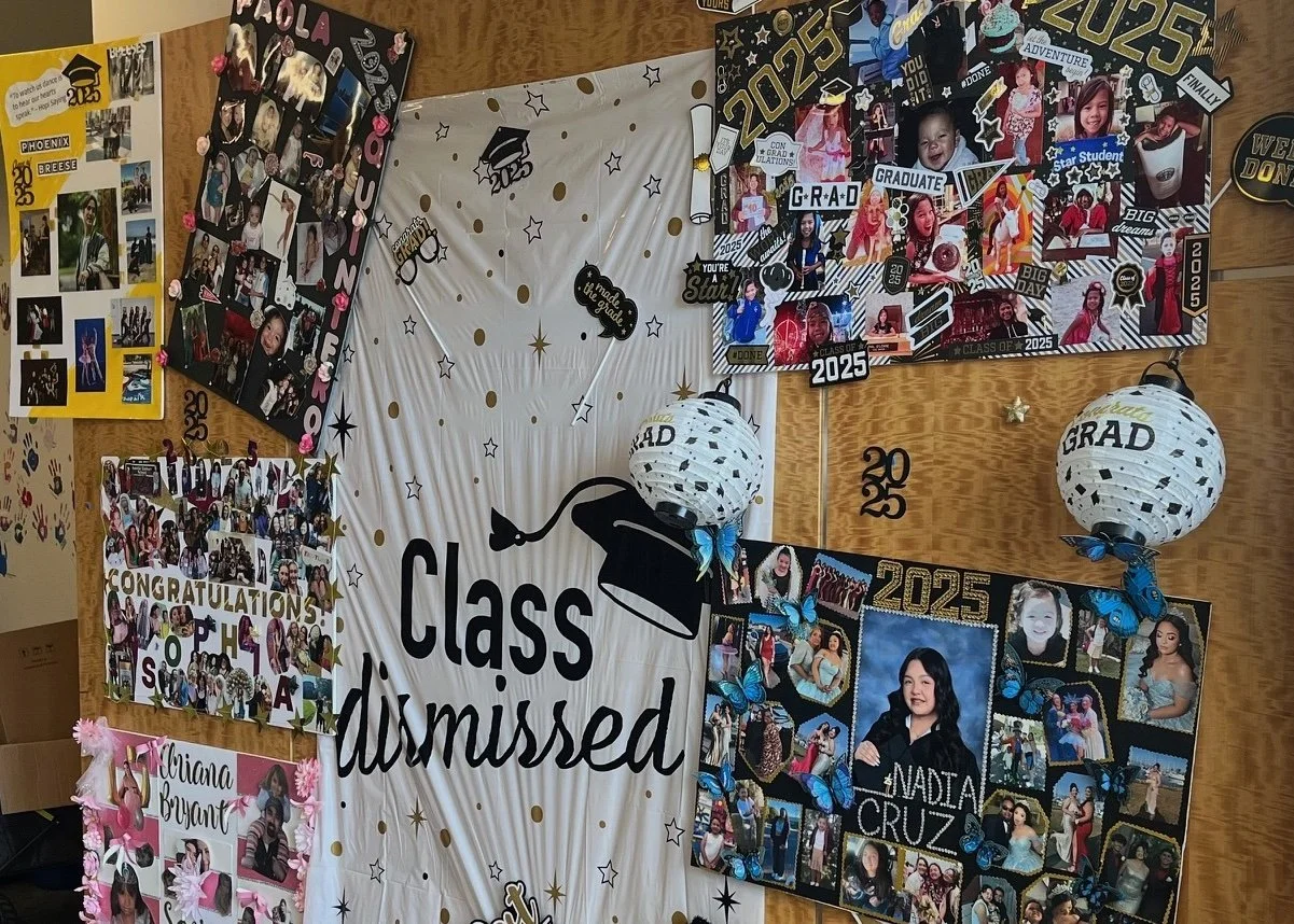 The entire school was open, doors unlocked, allowing students and families to walk through the classrooms, meeting up with friends and teachers, taking photos, and sharing stories. Video montages of student musical, dance, and theater performances ran on loops in classrooms.