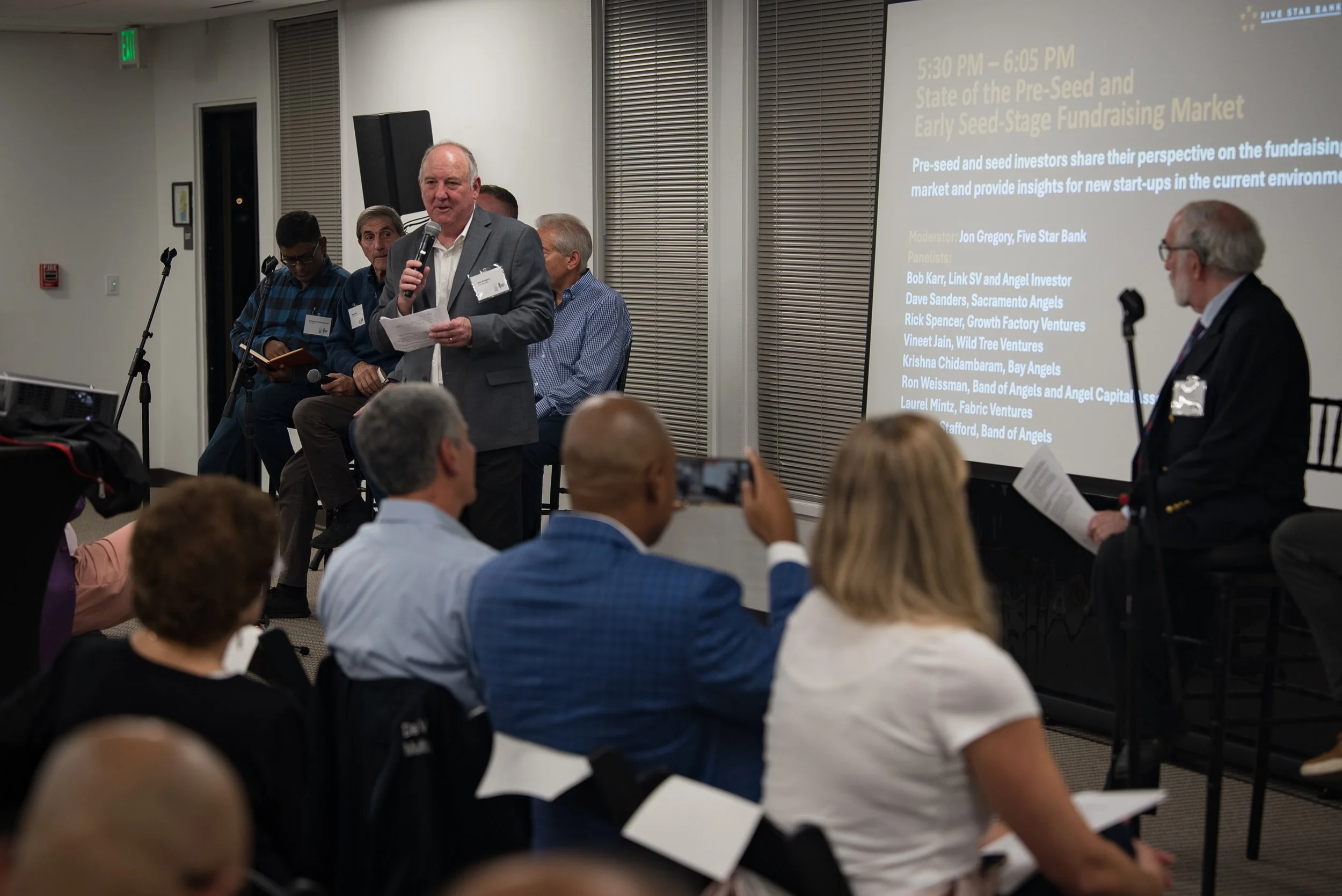 The second panel, State of the Pre-Seed and Early-Seed Fundraising Market, moderated by Jon Gregory, Senior Vice President/Venture Banking Manager, Five Star Bank, was a blend of individual angel investors and local/regional/national investor groups: Rebecca Stafford, Band of Angels; Ron Weissman, Band of Angels; Krishna Chidambaram, Bay Angels; Laurel Mintz, Fabric Ventures; Rick Spencer, Growth Factory Ventures; Bob Karr, LinkSV; Dave Sanders, Sacramento Angels; and Vineet Jain, Wild Tree Ventures.