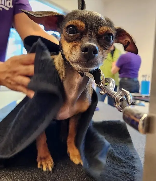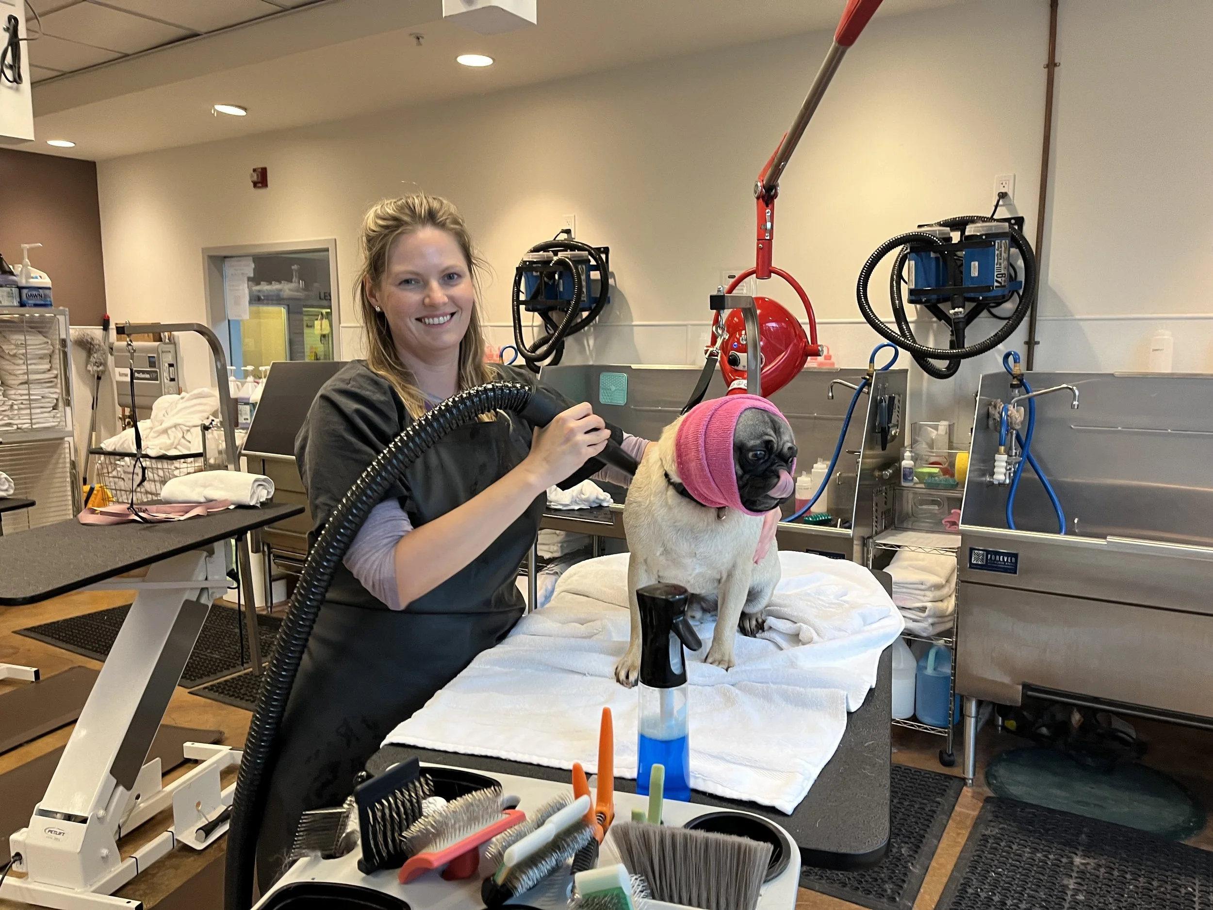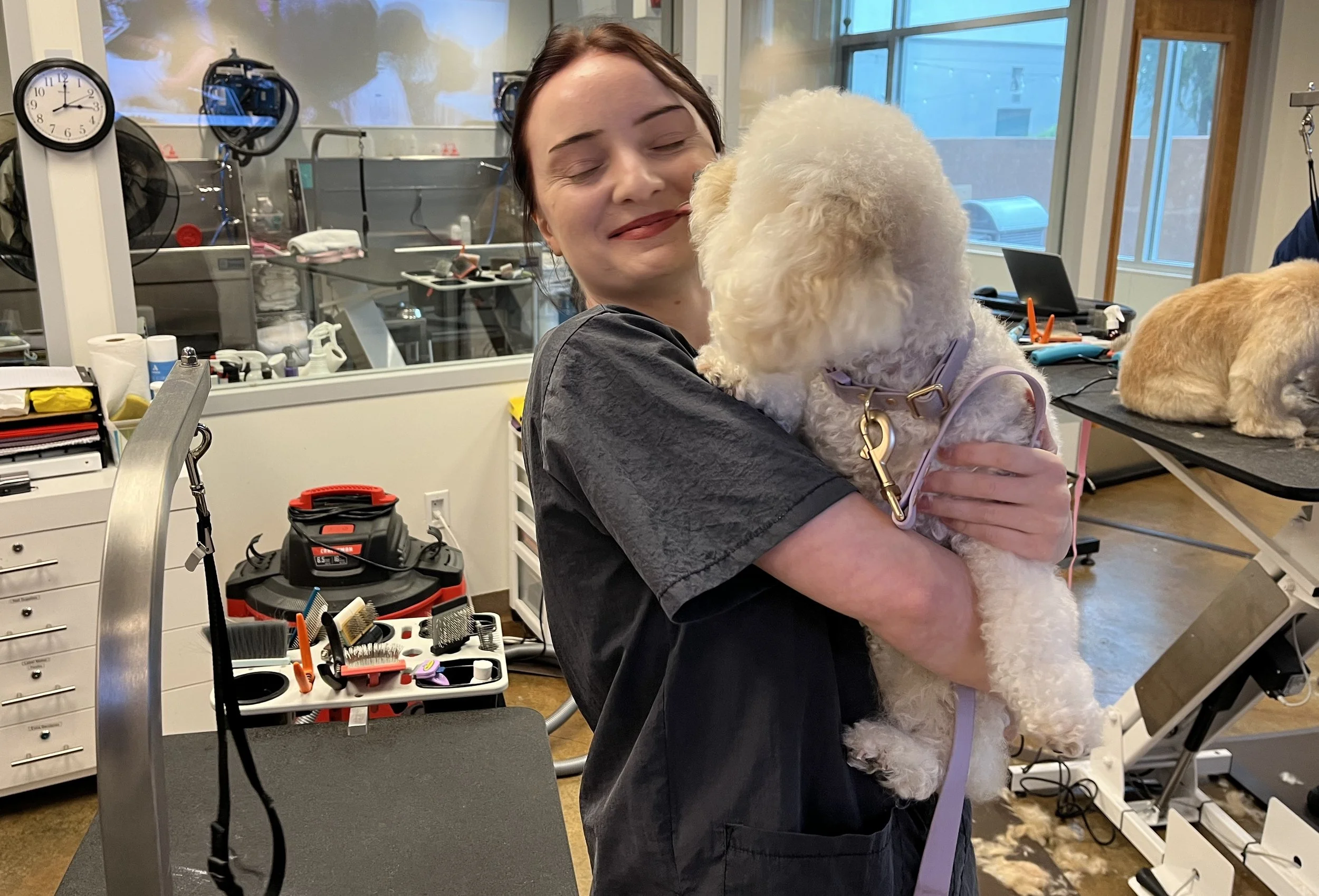 “Dog grooming is new to me, but here I am and I have found that I love it!” said Uziel. “I don’t think I’ve ever been in a job environment where I’ve been on my feet this much — constantly. This is non-stop, and honestly, so much fun. Not a boring moment. I mean really — it’s dogs!”