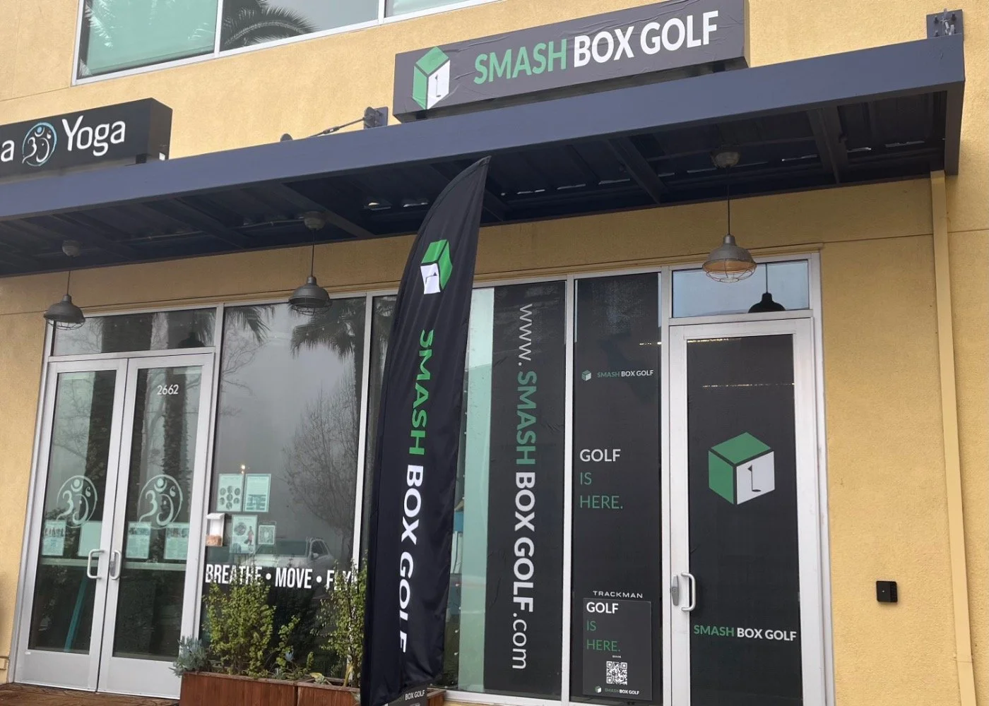 Keen to play Pebble Beach or St. Andrews without the travel and crowds? Family, friends, or clients coming into town and you’re looking for something extraordinary to do together? Itching to get in some golf before work, at lunchtime, or after the kids have gone to bed? Looking for a little self-care time on the course? Good news: SMASH BOX Golf, a premier, high-tech indoor golf simulator, has opened to golfers and guests in the Shadelands SportsMall at 2658 Shadelands Drive, adjacent to RagaYoga.