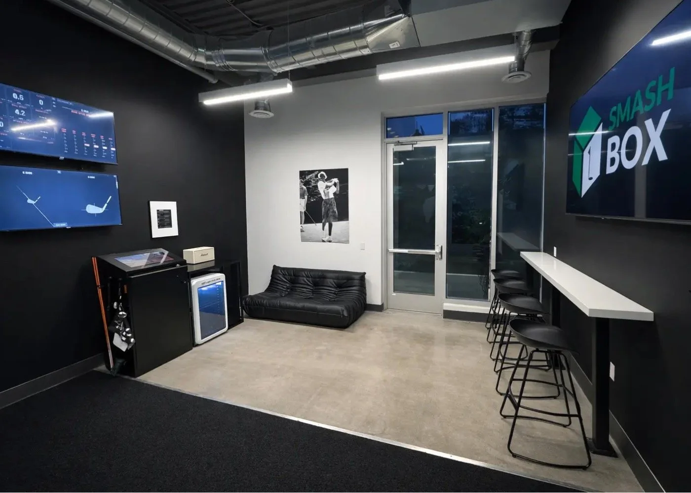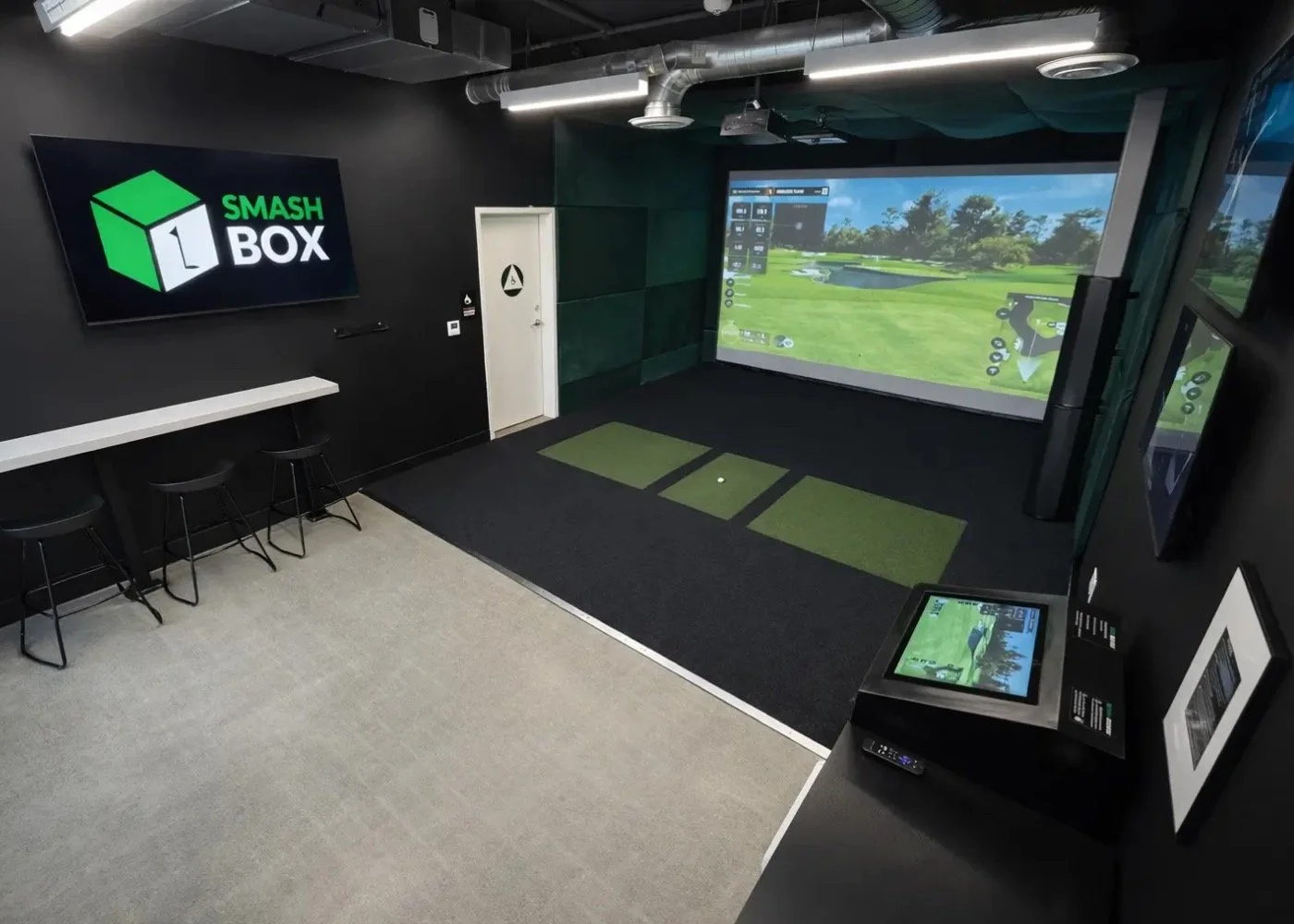 Located in a 600 sq. ft. single bay facility with a keyless entry, SMASH BOX is available year round, seven days a week: 24 hours a day for members, and from 7am to 10pm for the general public. When golfers book the facility, the whole place is their own personal space. They receive a code via email to get into the facility, and another code to unlock the bay so they can set about playing golf; working on their swing; training with partners, spouses, and kids; and enjoying themselves alone or in a special setting with family and friends.