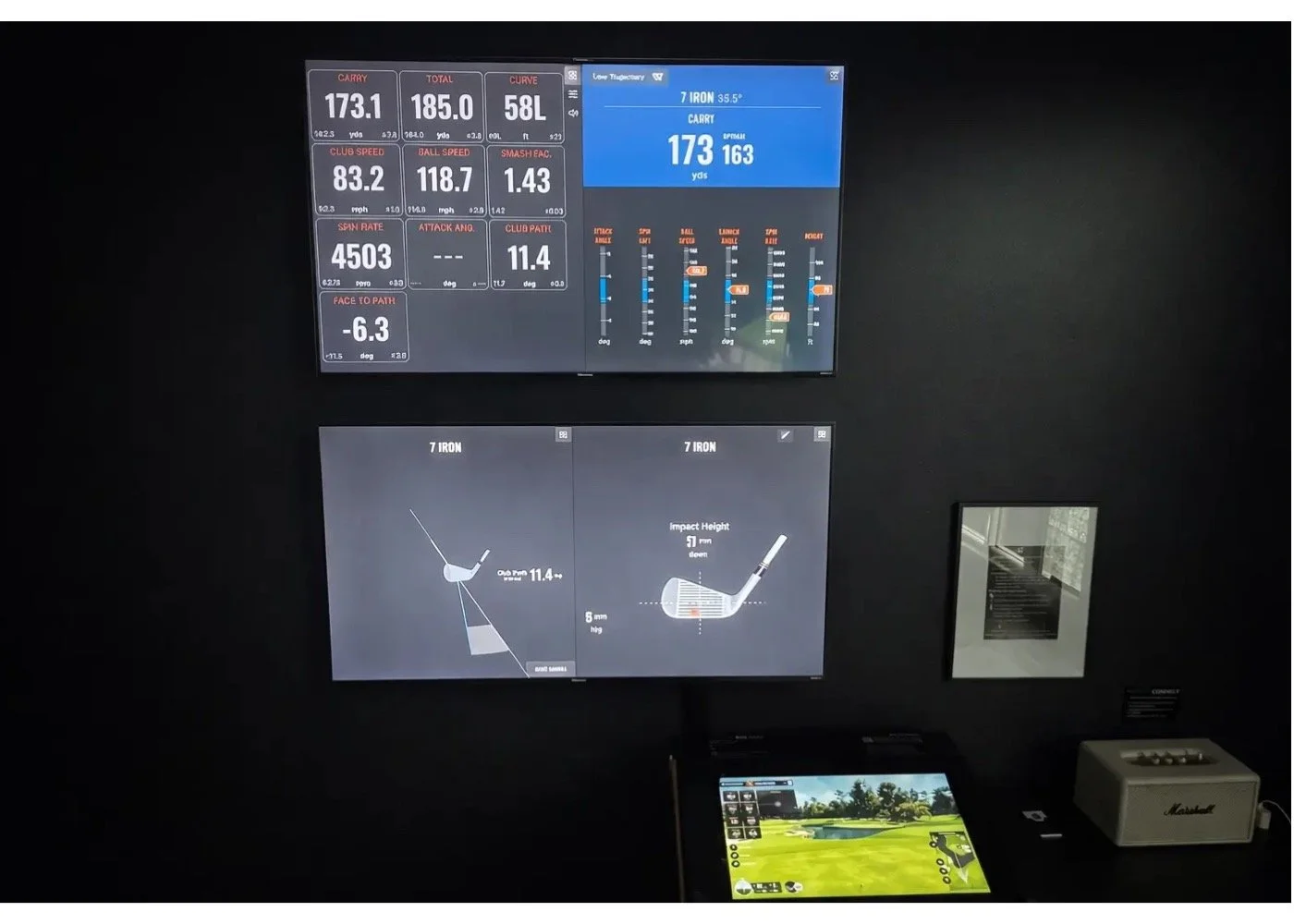 And because the software technology displays instant performance feedback and analysis on two wall-mounted screens, golfers can play and practice with purpose, refining their swings and club choices based on the data and their own goals.
