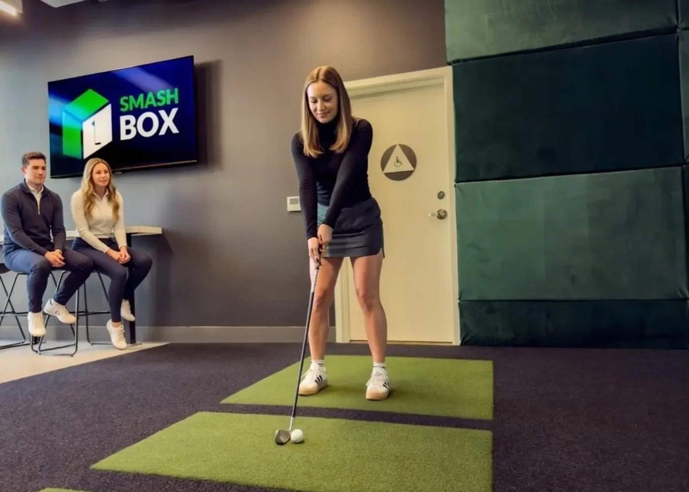 The SMASH BOX space is for all levels of play – from serious golfers, to amateurs and those just beginning to learn the game of golf. Less intimidating than being on an open outdoor course, SMASH BOX offers golfers an enclosed space to work on their game, from tee off through chipping.
